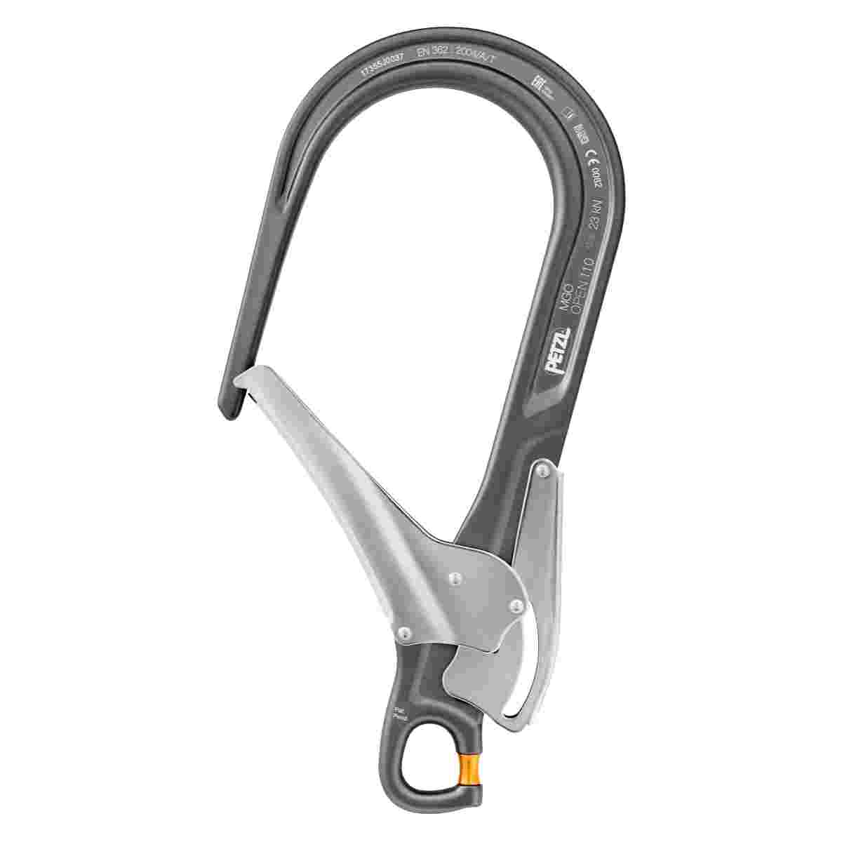 • Gated connection point allows the MGO OPEN to be directly installed at the end of ABSORBICA-I, ABSORBICA-Y, JANE, PROGRESS or PROGRESS ADJUST-type double lanyards and GRILLON-type work positioning lanyards. If the lanyard is damaged, the connector can thus be reused
